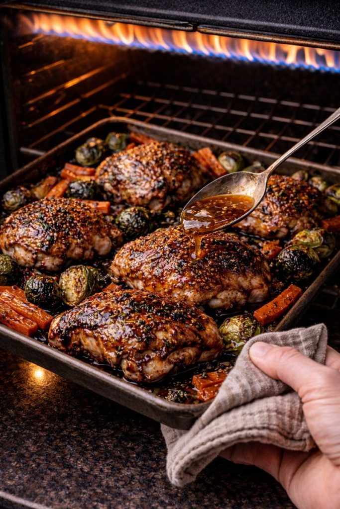 Using boneless, skinless chicken thighs is key here. Thighs stay tender and forgiving in the oven, especially when coated in a sauce that caramelizes instead of drying out. Pair that with vegetables that can handle high heat, and you’ve got a meal that cooks evenly and tastes intentional.