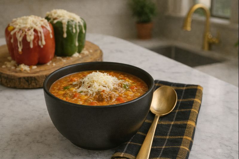 Stuffed peppers themselves are already a comfort classic, but turning them into soup makes them more forgiving, more flexible, and far easier to enjoy on a busy night.
